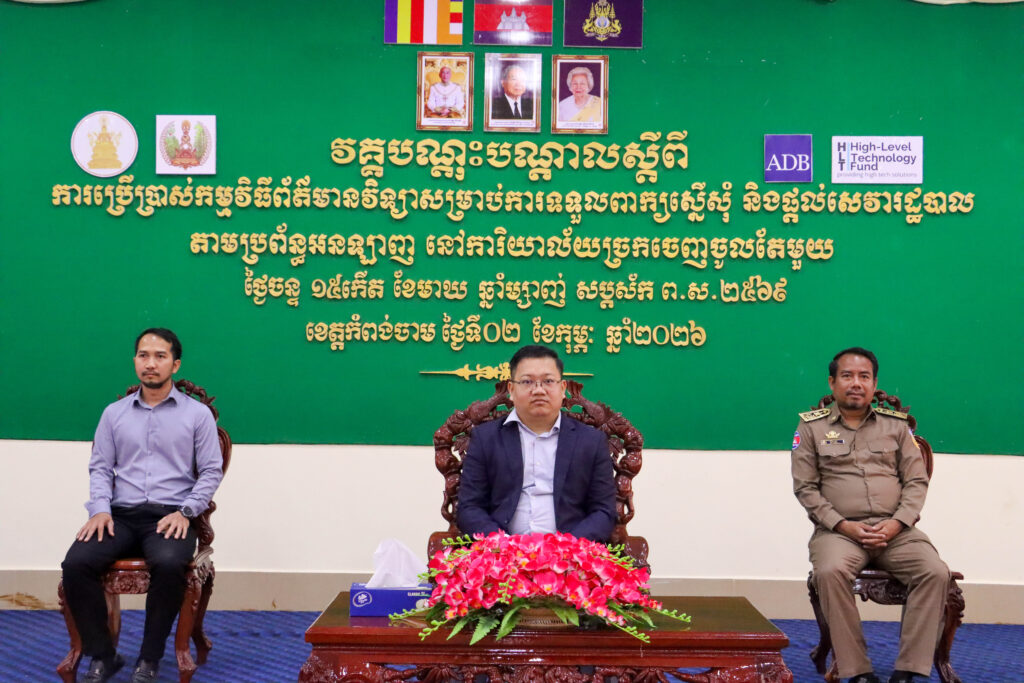 ខេត្តកំពង់ចាម៖ នាថ្ងៃទី២ ខែកុម្ភៈ ឆ្នាំ២០២៦ នាយកដ្ឋានមុខងារ និងធនធាន នៃអគ្គនាយកដ្ឋានរដ្ឋបាល ក្រសួងមហាផ្ទៃ បានរៀបចំវគ្គបណ្តុះបណ្តាលស្តីពីការប្រើប្រាស់កម្មវិធីព័ត៌មានវិទ្យាសម្រាប់ទទួលពាក្យស្នើសុំ និងផ្តល់សេវារដ្ឋបាលតាមប្រព័ន្ធអនឡាញនៅការិយាល័យច្រកចេញចូលតែមួយជូនរដ្ឋបាលស្រុកចំនួន៩ នៃខេត្តកំពង់ចាម។